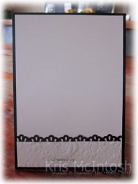 To decorate the inside of the card, I punched a narrow strip of Basic Black card using the Decorative Ribbon Border Punch and attached it behind one long edge of a narrow strip of Whisper White card which is embossed using the Country Floral Dynamic Embossing Folder. The panel is attached to the bottom of Whisper White card.