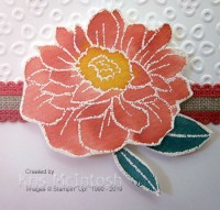 I stamped the flower and the leaves from the Band Together stamp set onto the Fluid 100 Watercolour Paper using Versamark ink. I sprinkled the image with White Embossing Powder and heat set it. I used my Aqua Painter to add water inside the embossed flower.