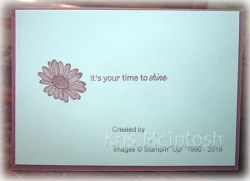To decorate the inside of the card, I stamped one of the greetings from the Daisy Lane stamp set onto Whisper White card using Rococo Rose ink. I also stamped the smaller flower from the Daisy Lane stamp set using Rococo Rose ink.