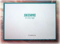 To decorate the inside of the card I stamped the greeting “awesome at any age” from the Itty Bitty Birthdays stamp set onto Whisper White card using Bermuda Bay ink.