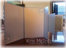 I stamped “world’s greatest” from the retired Guy Greetings stamp set using Memento Tuxedo Black ink. I printed “Manager” onto the card using my computer. I stamped the open flower from the Floral Essence stamp set below the greetings using Seaside Spray ink and once more used the Aqua Painter to move the ink around inside the image. This panel is attached to the inside left hand panel of the small card. The small card is attached to the small flap on the large card base. I stamped the large open flower onto Whisper White card using Seaside Spray ink.