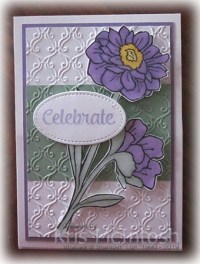 I stamped the flower from the Band Together stamp set onto scrap Whisper White card using Memento Tuxedo Black ink and coloured it using Mint Macaron, Highland Heather and Daffodil Delight Stampin’ Blends. I cut out the flower image and attached it to the embossed panel using dimensionals.