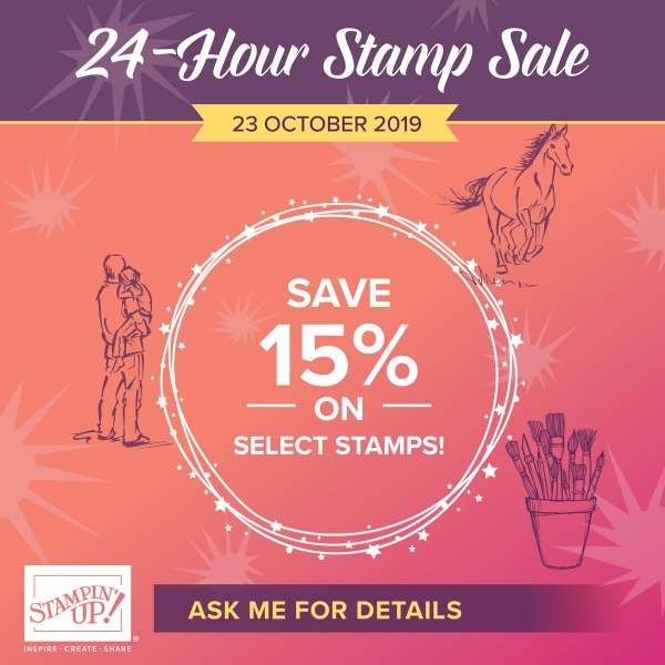 And it’s already off and running. Stampin’ Up! are having a sale all day today right up until 11.50pm tonight. Lots of stamp sets at 15% off.