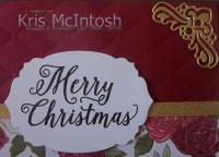 I stamped the greeting from the Christmas Rose stamp set onto Whisper White card using Early Espresso ink. I cut out the greeting using the co-ordinating Rose Die and attached it to the card front using dimensionals. I die cut Gold Foil twice using the die from the Rose Dies and attached it to the top left and right corners of the card front.