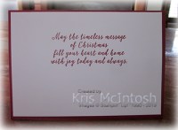 To decorate the inside of the card, I stamped the greeting from the Still Scenes stamp set onto Whisper White card using Cherry Cobbler ink.