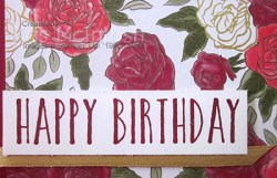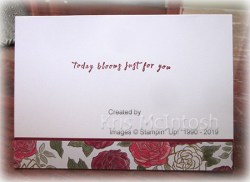 The ladies at Beachmere made the birthday card last week and I had a few kits left over. So, just to show how versatile this paper really is, I created the same basic card but this time, added a greeting from the Christmas Rose stamp set. I stamped the greeting onto Whisper White card using Cherry Cobbler ink and cut it out using the die from the Roses Dies.