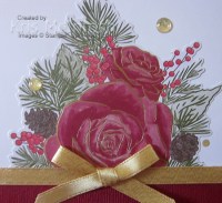 I am a lucky Mum to two wonderful girls who are the best daughters, wives and mothers anyone could wish to know. Anyway, I thought I would share the cards I made for each of them and their husbands this year. I created the same card for them both. You know you can’t play favourites! I began by embossing Cherry Cobbler card using the Subtle 3D Embossing Folder and attached it to the bottom of Whisper White card. I attached one of the die cuts from the beautiful Christmastime is Here Specialty Designer Series Paper above the embossed card. These are only partial images as they are on the edge of the paper but you can still use the co-ordinating Roses Die to cut them out. I wrapped the join between the floral image and the embossed card using the Gold 1/4″ Shimmer Ribbon.