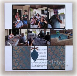 Today’s pages showcase some photos from our family Christmas Day celebration at Sarah & Sean’s home. We had such a lovely day. Lucky for us we got some rain and our temperature didn’t hit the 30’s so a very pleasant day. I have used some of the Brightly Gleaming Specialty Designer Series Paper and the Christmas Gleaming stamp set. Unfortunately, both of these items are no longer available for purchase. The first page has three pieces of Designer Series Paper attached across the bottom of a Whisper White 12″ x 12″ page.