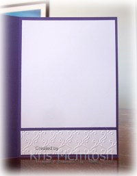 To decorate the inside of the card, I attached a narrow strip of Gorgeous Grape card behind one long edge of Whisper White card embossed using the Stylish Scroll Embossing Folder. The panel is attached to the bottom of Whisper White card.