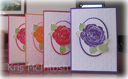 I loved the card so much I created it three more times using Lovely Lipstick, Mango Melody and Melon Mambo inks and card. I think they look great, don’t you?