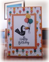 The Birthday Bonanza Designer Series Paper has some designs which are either the Koala, the Toucan or the Lion and for this card I cut out one of the Toucan’s holding balloons and attached it to the Whisper White rectangle.