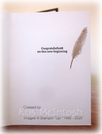 I attached the two images to Whisper White card before stamping the greeting from the Beautiful World stamp set using Early Espresso ink. The Whisper White panel is attached to Cinnamon Cider card (one of the new in-colours) and then scored and folded Thick Whisper White card. To decorate the inside of the card, I stamped another greeting from the Beautiful World stamp set using Early Espresso ink and also the feather image using Crumb Cake ink. A couple of more steps but still pretty simple and easy for someone to re-create.