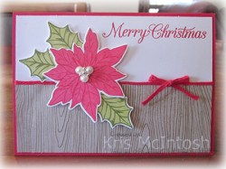 Yesterday on my Facebook Live, I shared some ideas for using the Poinsettia Place Product Suite. Of course, I didn’t cover everything, so I thought I would share another idea for using this beautiful suite. For this card, I attached a piece of the Poinsettia Place Designer Series Paper across the bottom of Whisper White card. I wrapped the top of the Designer Series Paper with a length of Real Red Braided Linen Trim. I stamped the greeting from the Poinsettia Place stamp set onto the Whisper White card using Real Red ink and attached the panel to scored and folded Real Red card.