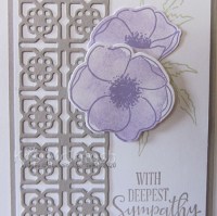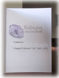 I stamped the greeting from the Peaceful Moments stamp set onto the inside of the card using Gray Granite ink. I stamped the small poppy from the Painted Poppies stamp set onto scrap Whisper White card using Highland Heather ink. I stamped the fill image using Highland Heather ink which I stamped onto scrap paper first. I cut out the poppy using the co-ordinating Painted Labels Die and attached it beside the stamped greeting.