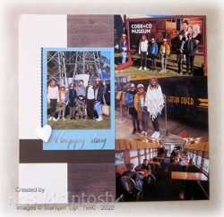 We had a lovely time exploring Toowoomba when we visited in the July school holidays. The pictures on today’s pages show off our visit to the Cobb & Co Museum and the Downsteam Train Museum, both amazing places! I used Very Vanilla 12″ x 12″ card for the base for each page. On the first page, I added the photos to the right hand side and then attached a strip of the In Good Taste Designer Series Paper.
