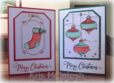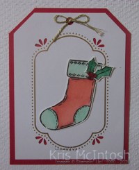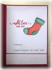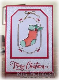 The stocking is cut out and attached to the right of the stamped greeting.