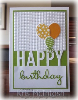 Today’s card uses the So Much Happy bundle from the Annual Catalogue. I began by cutting Whisper White card with the “happy” die from the Happy Dies. I embossed the section above the die cut happy using one of the Wrapped in Texture Embossing Folders. I attached the die cut and embossed panels to Granny Apple Green card and then scored and folded Thick Whisper White card.