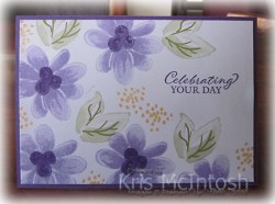 I stamped the greeting from the Gorgeous Posies stamp set using Gorgeous Grape ink before attaching the stamped panel to scored and folded Gorgeous Grape card.