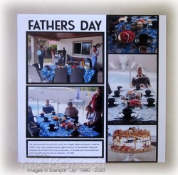 Today’s page is a very simple one, just lots of photos and a small amount of journaling. We celebrated Father’s Day with brunch at our daughter’s home. The three photos on the right of the page are attached to a long strip of Basic Black 12″ x 12″ card which is unfortunately not available at the current time. Each of the two remaining photos are also attached to Basic Black card. I printed the journaling onto Whisper White card and it is also attached to Basic Black card. The title is cut from Basic Black card using the Playful Alphabet Dies. I bet you can tell I love these dies! They are the perfect size for my memory keeping pages.