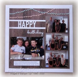 A couple of weeks ago we had a birthday lunch with Jae, Noah and Ethan. Jae celebrates her birthday in October and the boys in May and June. Because of COVID we didn’t have the chance to take the boys out for lunch, so we had one the one lunch to celebrate the three birthday. Such a lovely thing to spend time eating out with my lovely grandchildren. I cut Whisper White card using the Happy Die and attached it across the left hand side of a piece of In Good Taste Designer Series Paper. I did have to trim the piece to get longer strips at the top and the bottom of the die cut.