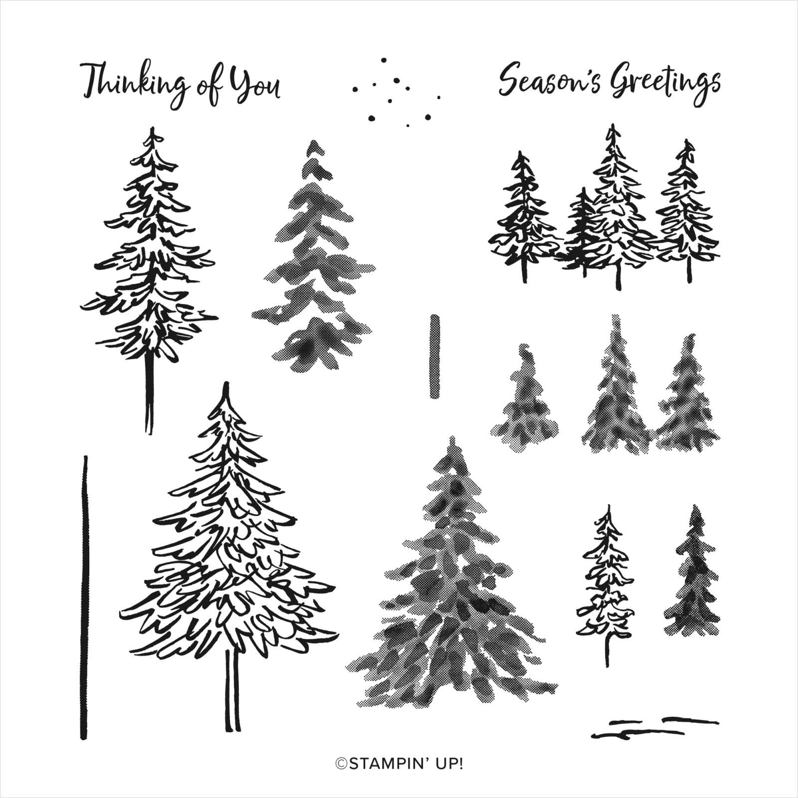 I stamped the line of tree image from the In The Pines stamp set onto Whisper White card using Shaded Spruce ink. I added the fill image using the same ink which I stamped onto scrap paper first.