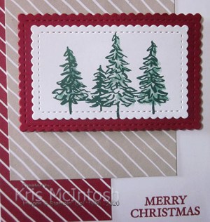 I stamped the line of tree image from the In The Pines stamp set onto Whisper White card using Shaded Spruce ink. I added the fill image using the same ink which I stamped onto scrap paper first.