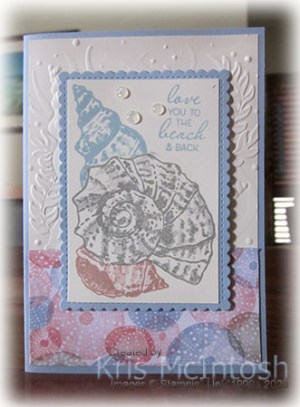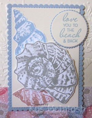 I didn’t share a Note Card yesterday so thought I would share my creation today. I stamped the shell from the Friends are Like Seashells stamp set onto the Note Card using Blushing Bride ink. I masked the image using a post-it-note mask and then stamped the second shell using Seaside Spray ink.