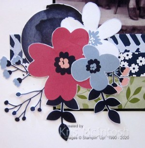 I attached two strips of the Paper Blooms Designer Series paper across the page just covering the bottom of the photo and journaling block. I cut all of the flowers and circles from the Paper Blooms Designer Series Paper and attached them to the lower left and upper right of the photo block. I really love how this bright and cheery paper has given my photo a bit of a lift. What do you think?