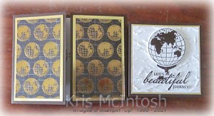 I embossed Basic White card using the Old World Paper 3D Embossing Folder and attached it to the Gold Foil card. I stamped the globe base and the globe from the Beautiful World stamp set onto Basic White card using Early Espresso ink. I used the co-ordinating World Map Dies to cut out the images. I attached the images to the embossed Whisper White card using dimensionals underneath the globe.