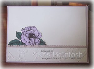 Beautiful card, Kris! You did a beautiful job of coloring the flowers! The embossing folder you used for the background really adds interest, but allows the flowers to shine as the focal point! Thank you for sharing your card and creative talents with us at Try Stampin’ on Tuesday!!! -Donna