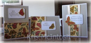 Such pretty cards and another fun way to use our stamps, ink and paper. I can’t thank Sara enough for sharing her idea to stamp onto coloured cardstock. It’s amazing how different the same ink colours look on the different cardstock. Make sure you check the Last Chance Items if you wish to purchase the lovely Floating & Fluttering stamp set and Fluttering Dies.