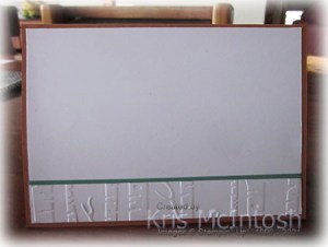 Today’s card uses the Flowers for Every Season 6″ x 6″ Designer Series Paper not for a girly card, but one for the boys. I embossed Basic White card using the Woodland Embossing Folder. I attached a strip of the Flowers for Every Season Designer Series paper across the bottom of the embossed card.
