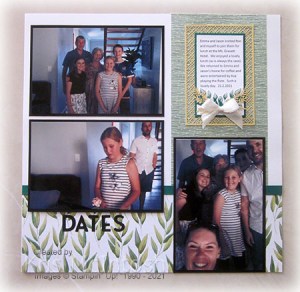 On the same weekend, we were invited to lunch at Sarah and Sean’s along with my Mum and Dad on Saturday and on the Sunday we joined Emma, Jason and the children at their local Hotel for lunch. A busy but so lovely weekend. I attached panels of Forever Greenery Designer Series Paper to Basic White 12″ x 12″ pages. I added a narrow strip of Shaded Spruce card to the top of the panels which spanned across the pages. The photos are attached to Basic Black card before being attached to the pages.