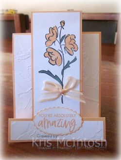 I haven’t made one of these cards in a while but I thought that the new Colour & Contour stamp set would work well. I use the instructions at Splitcoast Stampers for dimensions (all in inches). I cut the card base from Pale Papaya card and attached Basic White card which I embossed using the Painted Texture 3D Embossing Folder to the side panels and across the bottom of the card. I stamped the floral image from the Colour & Contour stamp set onto Basic White card using Memento Tuxedo Black ink.
