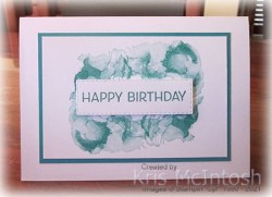 I was drawn to the Expressions in Ink Product Suite because of the beautiful colours and the watercolour look of the papers and stamps. However, the first card I created using this suite is very simple. I stamped the large watercolour image from the Artistcally Inked stamp set onto Basic White card twice using Bermuda Bay ink.
