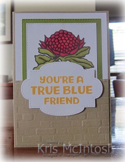 I embossed Crumb Cake card using the Brick & Mortar 3D Embossing Folder and attached it across the bottom of the panel before attaching the whole piece to scored and folded Crumb Cake card.