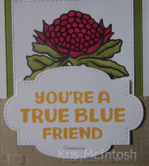 Today’s card is another one I created using the United Through Creativity FREE PDF download which Stampin’ Up! has currently made available and which you can find here in my online store. I printed out the images and greeting from the United Through Creativity download onto Basic White card. I coloured the floral images using Light Real Red, Cherry Cobbler and Old Olive Stampin’ Blends. I cut one image using one of the Stitched Rectangle Dies, attached it to Old Olive card cut using a slightly larger rectangle from the same dies before attaching the panel to Basic White card.
