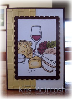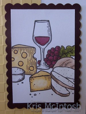 I cut Blackberry Bliss using one of the Scalloped Contour Dies and trimmed the coloured image to fit onto the die cut. The image panel is attached to the card front using dimensionals.