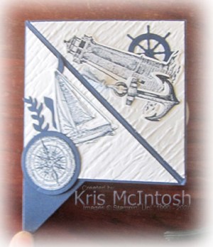 I also used the same dies to cut the seaweed from Night of Navy card. I cut out the compass image and attached it to a Night of Navy circle cut using the Layering Circles Dies. I attached the seaweed first with the sailing ship on top and lastly the compass image.