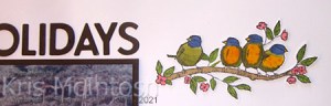 I cut them out and attached them to the page. I used some photos I found on the internet of Lorikeets and used them as a guide to colour the birds and I think they turned out ok. What do you think?