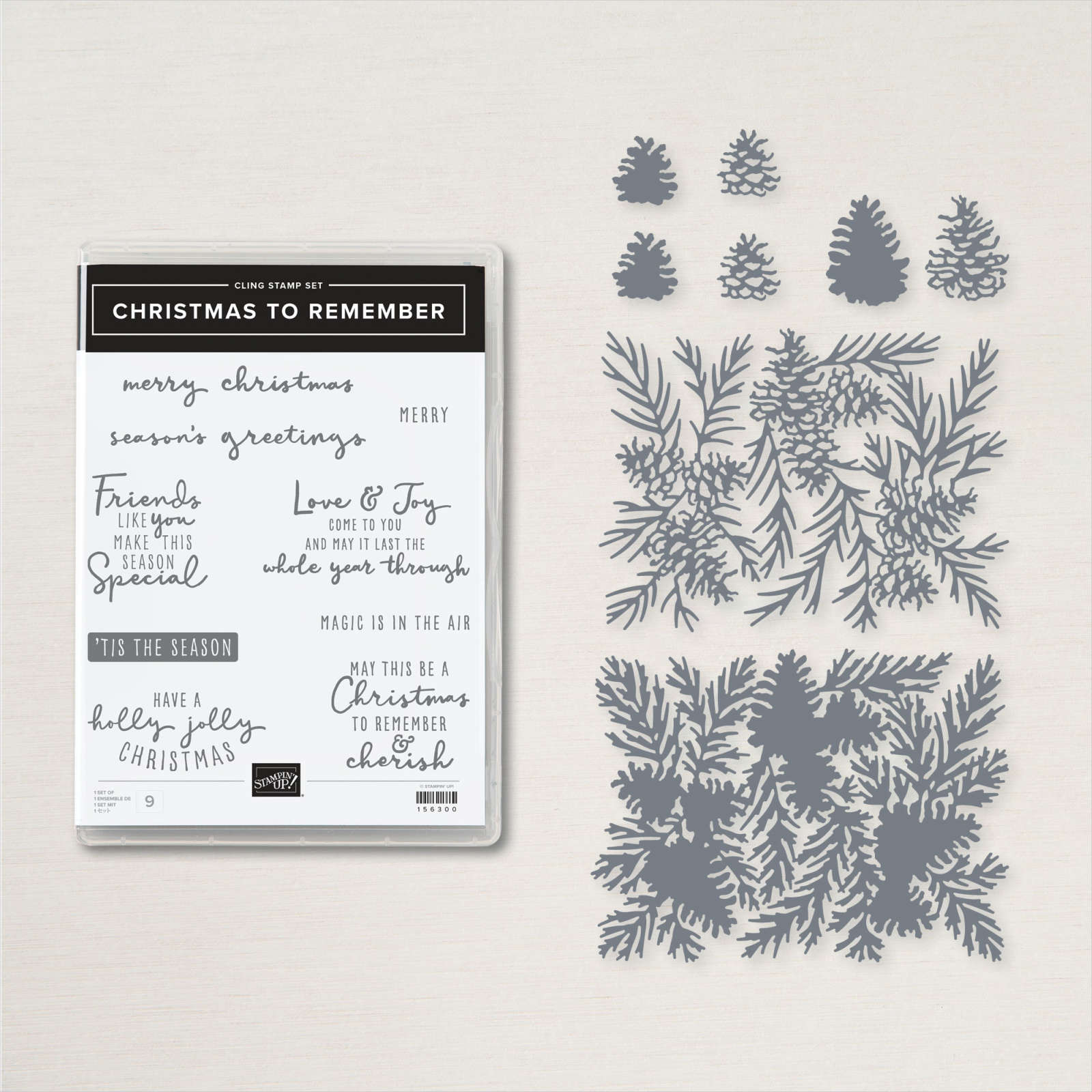 I attached a berry image over each set of leaves and added the pine cone image to the top left hand corner. I stamped the greeting from the Christmas to Remember stamp set onto Basic White card using Cherry Cobbler ink. I cut out the greeting using the Seasonal Labels Die and attached it to the card front using dimensionals. To decorate the inside of the card, I stamped the greeting from the Christmas to Remember stamp set onto Basic White card using Cherry Cobbler ink. I stamped the two step leaf from the Christmas Season stamp set next to the greeting using Soft Succulent ink.