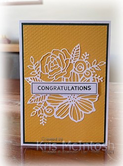 I cut Basic White card using the beautiful floral die from the Artistic Dies and attached it to the embossed card. I stamped “congratulations” from the stamp set included in the kit onto one of the labels using the Evening Evergreen Stampin’ Spot also included in the kit.