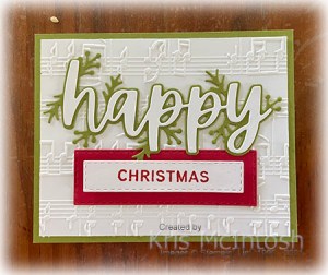 The second panel uses the Merry Melody 3D Embossing Folder as background. I have also used the Christmas Cheer Dies, Stitched Rectangle Dies and the Words of Cheer stamp set.