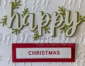 Today’s card uses the second panel that I created for my Framed Art piece this year. I will update the PDF instructions for the Framed Art Piece to include instructions for these cards once you have seen all five. To begin this card I embossed Basic White card using the Merry Melody 3D Embossing Folder. I cut a piece of Real Red card in half using the Basic Border Dies.