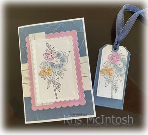 I cut Basic White card using one of the Scalloped Contour Dies and stamped “happy” and “birthday” using the greeting from the Artistically Inked stamp set using Misty Moonlight ink. I cut the “17” from Misty Moonlight card using the Playful Alphabet Dies and stamped the “th” by inking only those letters from the Artistically Inked stamp set. I attached the stamped die cut to a piece of Fresh Freesia card and then the pop up. I loved the finished result and decided to create a little tag to go with the present. I used the Tailor Made Tags to cut out the stamped and coloured image from the Blessings of Home stamp set. I cut Misty Moonlight using a slightly large die and attached the two tags together using a length of Denim Ribbon.