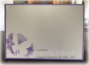 The stamp set has co-ordinating dies which I purchased in my pre-order (a demonstrator perk). For the first card I am sharing today, I stamped the butterfly image from the Amazing Silhouettes stamp set onto the left hand side of Very Vanilla card using Highland Heather ink.