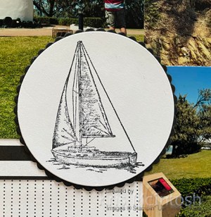 I cut the title from Basic Black card using the Playful Alphabet Dies and attached them to the top left hand corner of the Designer Series Paper. I also stamped the bird image from the Sailing Home stamp set onto the top right hand corner using Memento Tuxedo Black ink. I stamped the large sailing ship image from the Sailing Home stamp set onto Basic White card using Memento Tuxedo Black ink and cut it out using one of the Layering Circles Dies. I attached the image to a Basic Black scalloped circle and then the page, covering some of two of the photos. I printed my journaling onto Basic White card which I cut into strips before attaching to the page.