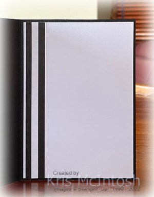 I removed the post it note mask and coloured the images using Blackberry Bliss, Highland Heather Ivory and Bronze Stampin’ Blends. I stamped the bird image from the Beautiful Moments stamp set onto the sky using Memento Tuxedo Black ink. I attached the stamped panel to Basic Black card and then the card front using dimensionals. To decorate the inside of the card, I simply attached a narrow strip of the same pattern from the Pattern Party Designer Series Paper to the left hand side of Basic White card.