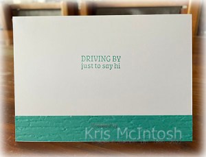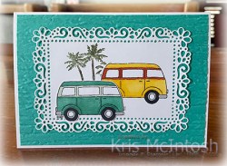 I created my card today using the Driving By stamp set after I saw this card by Amy Koenders. I did change it a little but it gave me a starting point. I embossed Bermuda Bay card using the Bark 3D Embossing Folder and attached it to scored and folded Thick Basic White card. I cut basic White card using one of the Ornate Layer Dies and stamped the car image from the Driving By stamp set onto the right hand side of the die using Memento Tuxedo Black ink.