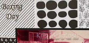 Today’s page shows off a photo of my sisters and I on Boxing Day 1964 in Chicago. My grandfather worked with a gentleman whose daughter lived in Chicago and insisted we look them up while we were living there. They became great family friends. To begin this page I cut 3″ squares of the All Together 6″ x 6″ Designer Series Paper and attached them to a Basic White 12″ x 12″ page. Since I love Black & White Designer Series Paper the All Together paper is sure to be a favourite with me.